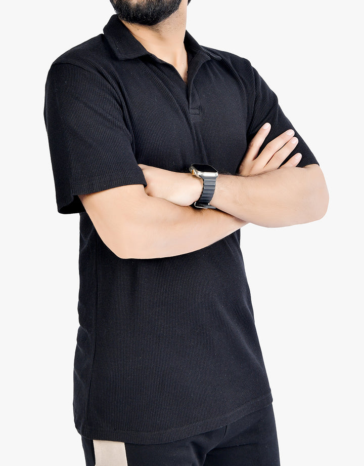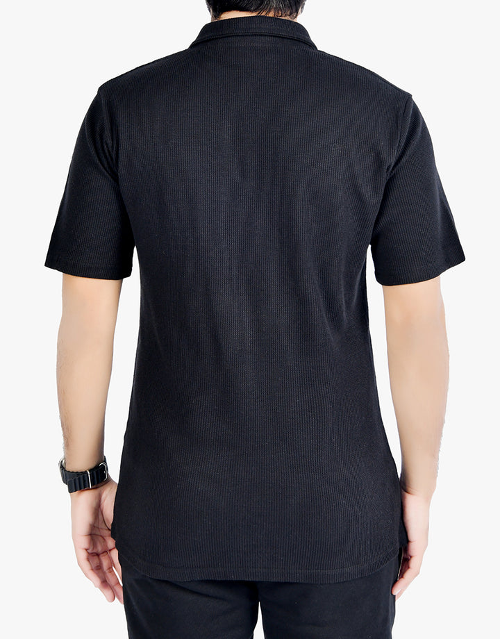 Hampton Ridge Men's Waffle Shirt - Short Sleeve Loose-Black