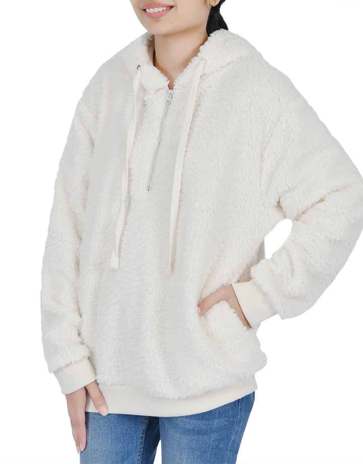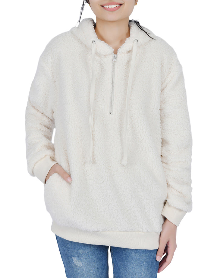 Experience the epitome of comfort and style with the Hampton Ridge Women's Oversized Pullover Hooded Sweatshirt. Crafted from a plush blend of 95% polyester and 5% spandex, this fuzzy fleece long-sleeve zip-up sweatshirt is designed to keep you cozy and fashionable.